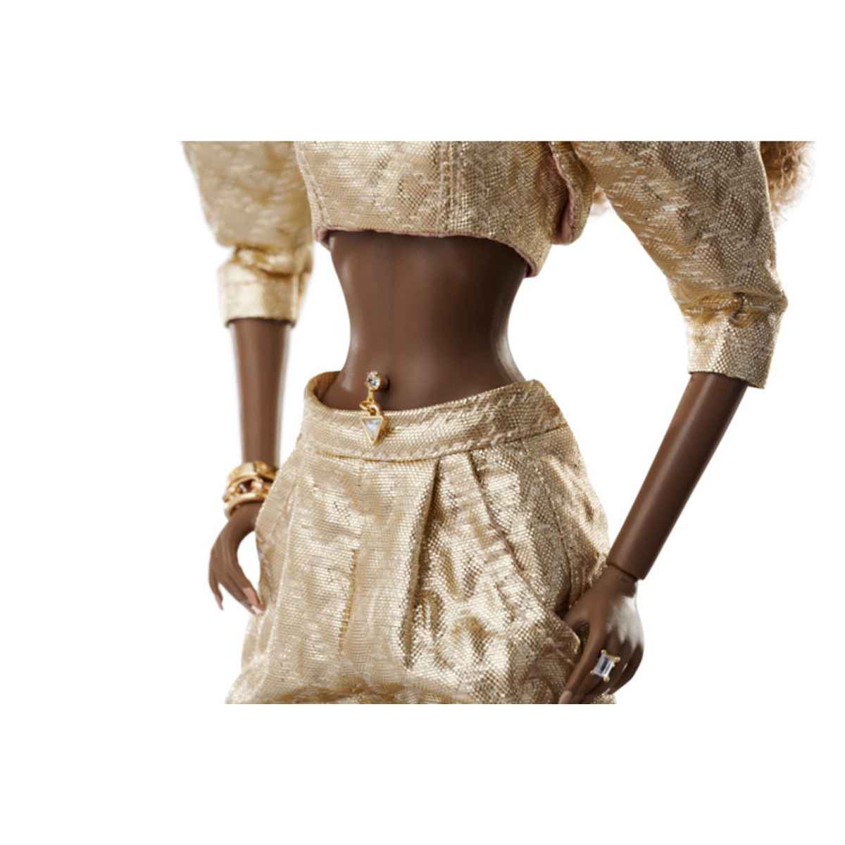 - Removable golden and "diamond" belly ring (slightly loosely fitted to avoid damage);